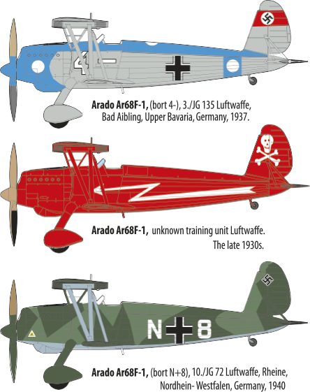 These aircraft were already considered obsolete when they were delivered to the Luftwaffe and they were mainly transferred to training units, as then the famous Bf 109 was imminent, and it would surpass all previous developments. Nevertheless, the Arado Ar 68F was used not only as an aircraft for the training of novice pilots, but also in combat, mainly in secondary theaters, where the probability of a duel with a strong enemy was minimal. Some machines of this version were still in service in 1941, when the era of these archaic biplanes was coming to an end.